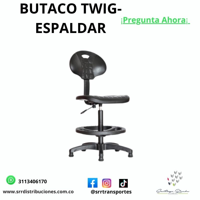 Butaco cajero neumatico con asiento y espaldar en poliuretano con aroapoyapies con base 320 con ruedas o deslizadores